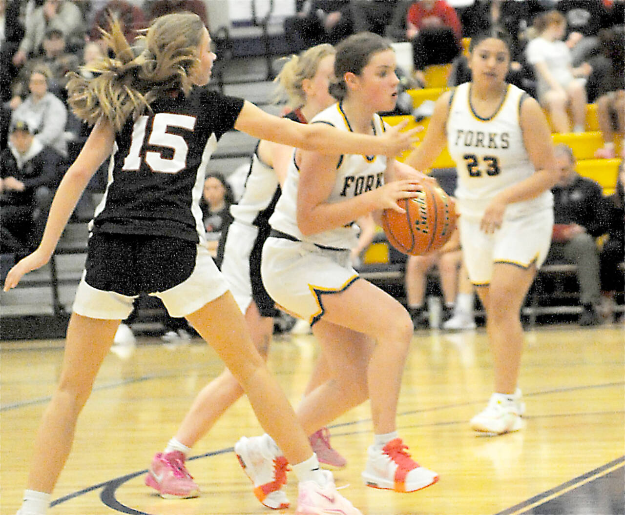 Bailey Johnson nearly had a triple-double. She had 15 steals, which coach David Hurn said is the most he’s ever seen in a Forks game. She added 10 points, eight rebounds and four assists.