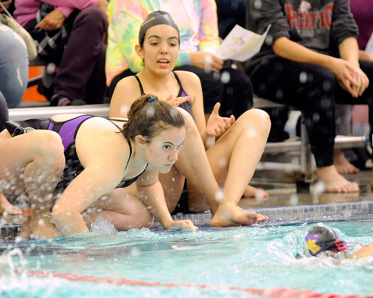 Port Angeles’ Felicia Che and Kenzie Johnson each won two races at Friday’s meet, while Lauren Sundin, Mia Coffman and Sydney Swanson all won races for Sequim.