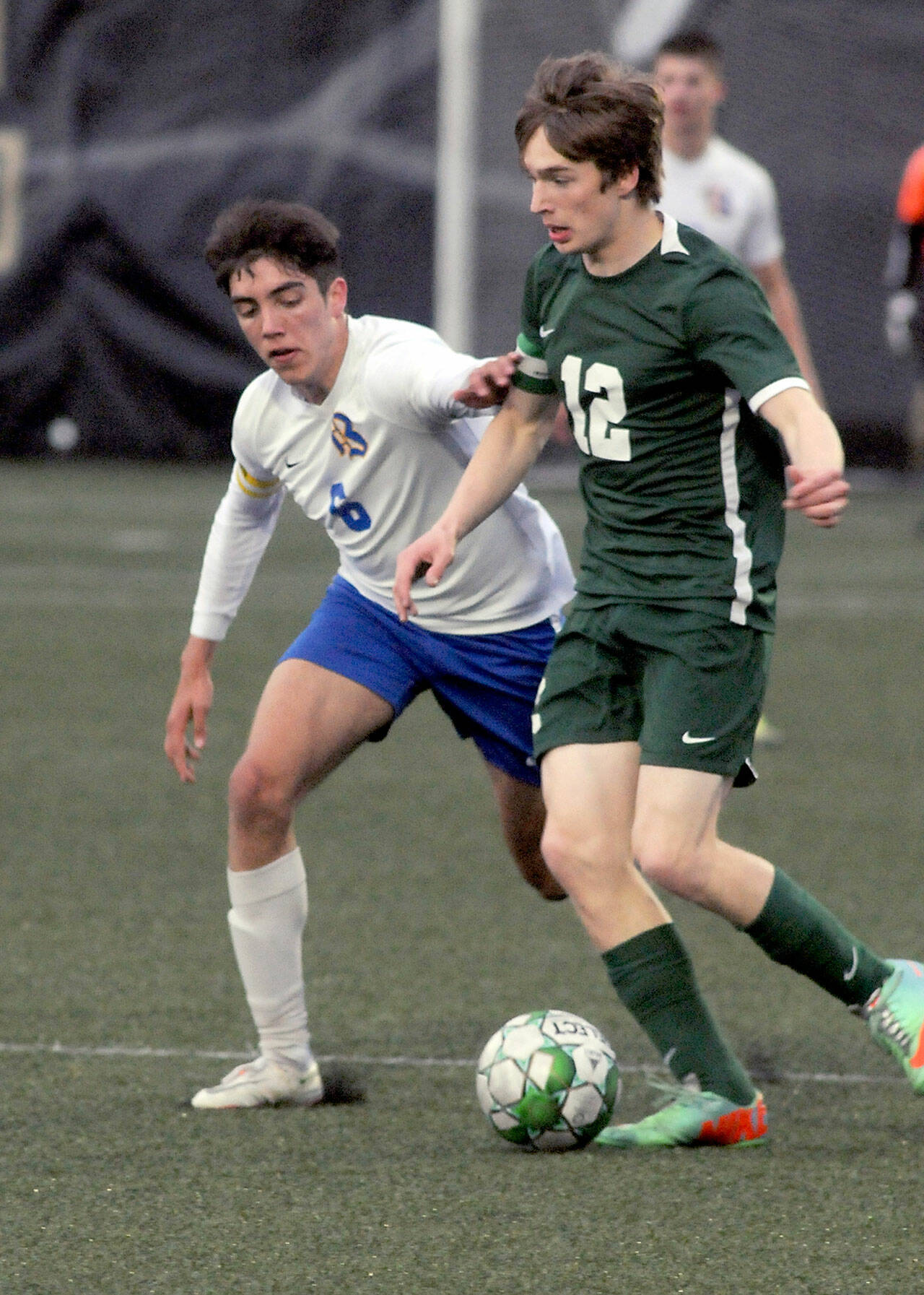 Bremerton got a fortuitous goal in the 37th minute when Ryan Bell booted a crossing pass from the right sideline, but it went high and long and over Hogan’s outstretched arm for a goal.