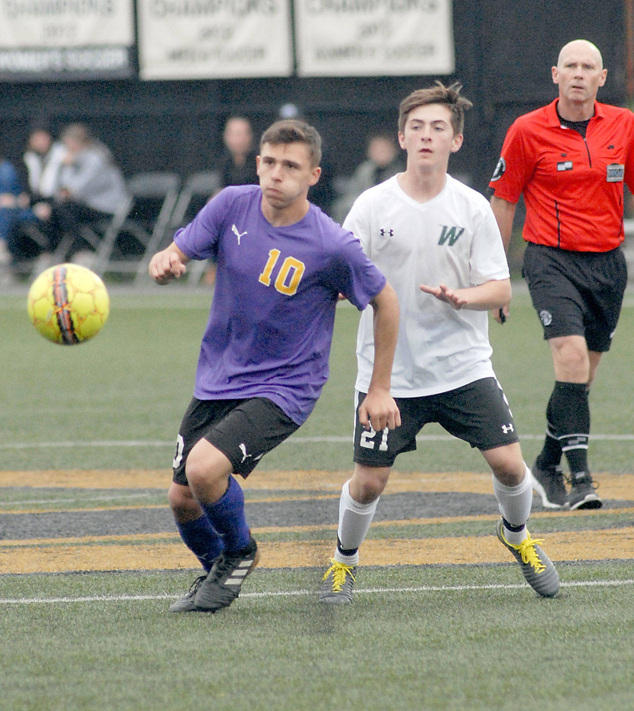 Woodland’s Jackson Finn, a big, strong sophomore, gave the Wolves a hard time all night at Peninsula College’s Wally Sigmar Field, scoring all three of the Beavers’ goals. Sequim got both of its goals from Ryan Tolberd, who came within a whisker of a hat trick himself.