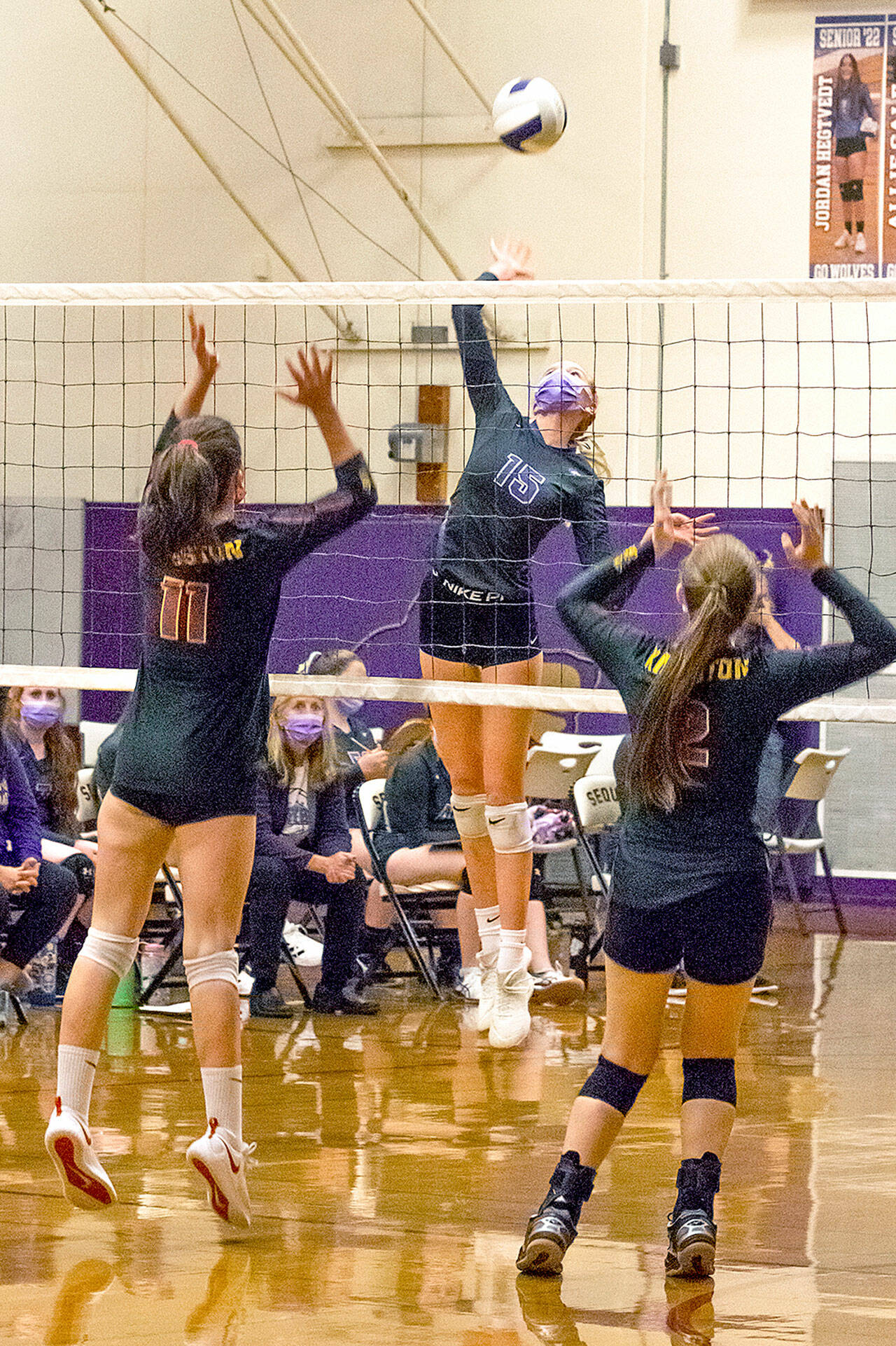 Kendall Hastings led the Wolves at the net offensively with 16 kills. She added 11 assists, two stuff blocks, four digs and served 9 of 10 with two perfect passes.
