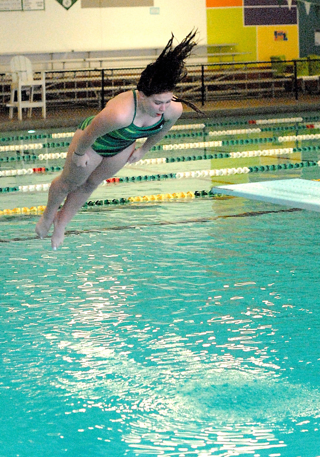 Port Angeles achieved three new individual district standards. Crescent’s Aubrie Scott also qualified for districts in 1-meter diving.