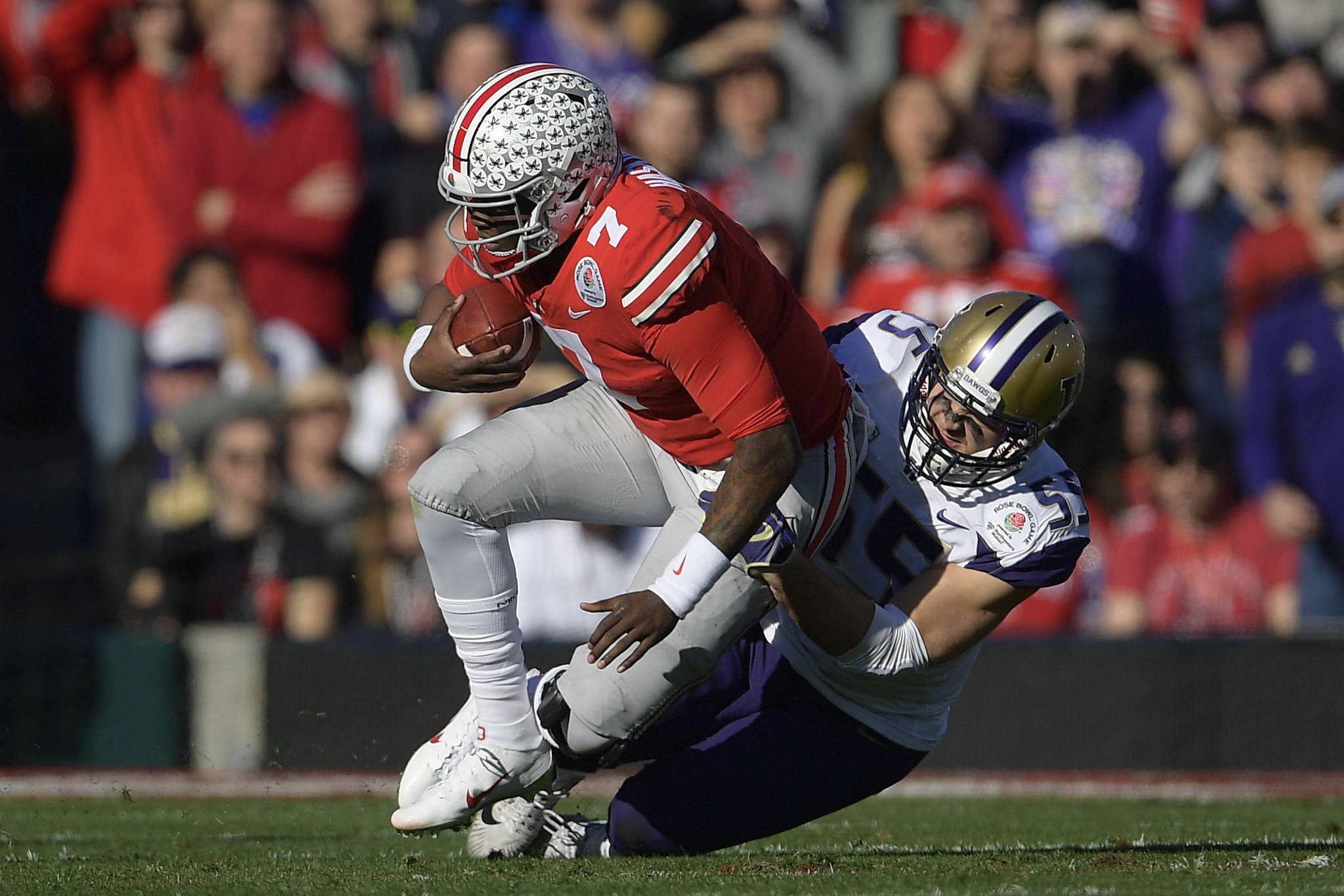 The Huskies got no closer, however: The Buckeyes intercepted Jake Browning’s pass on the 2-point conversion attempt and then recovered Washington’s onside kick.