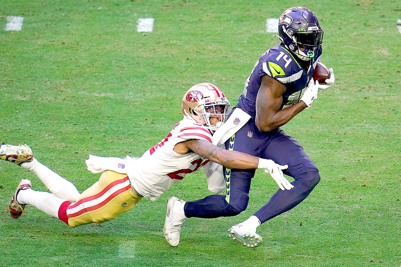 Seattle forced the 49ers to punt on the ensuing possession and then methodically marched 85 yards on 14 plays and scored the go-ahead touchdown on fourth down on Wilson’s 4-yard throw to Lockett. Wilson finished 20 of 36 passing for 171 yards. Lockett had 12 catches for 90 yards.