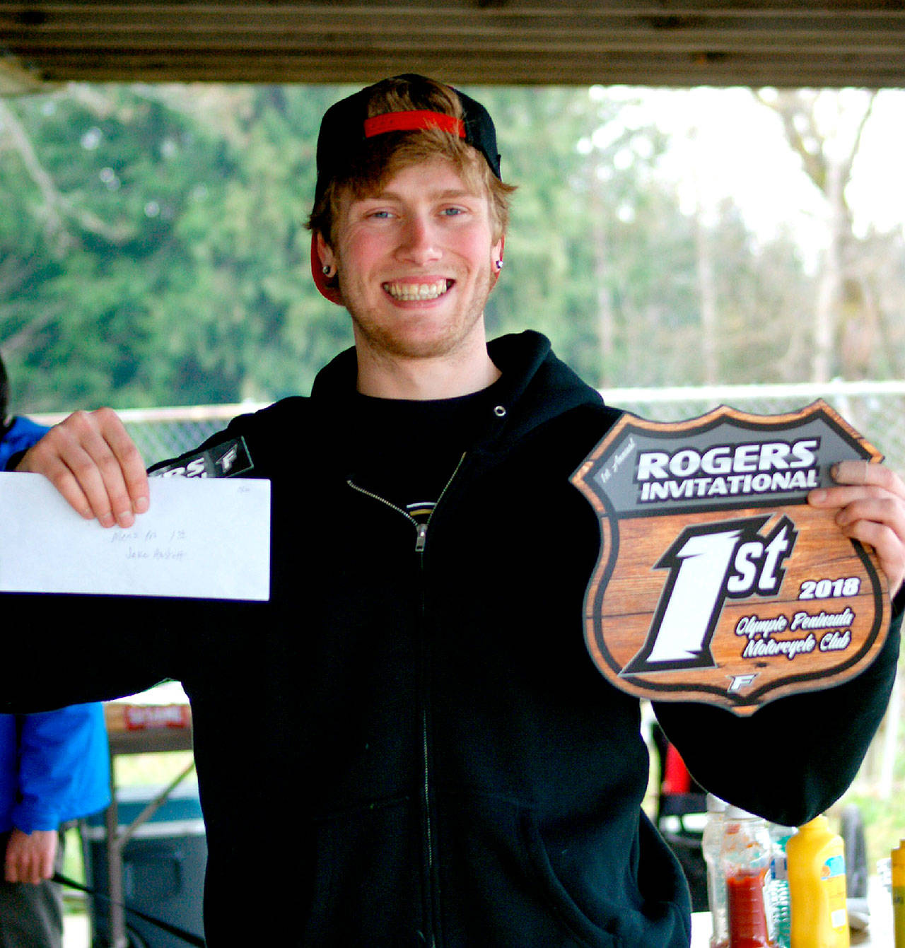 PORT ANGELES — Jake Anstett of Port Angeles won the checkered flag and a $1,500 crash prize at the Rogers Invitational Motorcross races at the Deer Park Motorcross track Sunday.