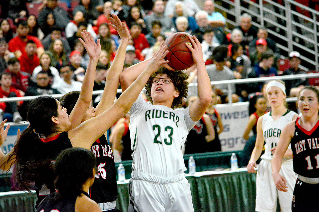 Port Angeles’ Madison Cooke and Millie Long hit treys to open the second half and pull the Riders within 16, but the defensive intensity lagged momentarily and East Valley erased that momentum with two buckets inside by Sylve and a 3 by Alyssa Valdez.
