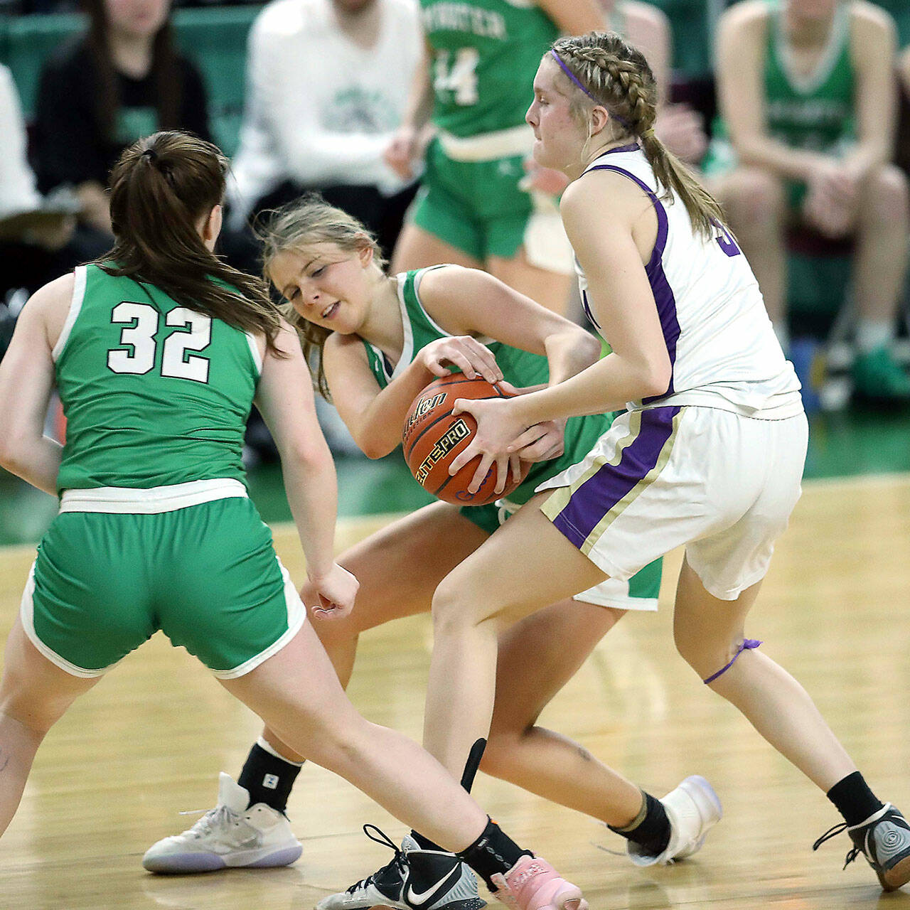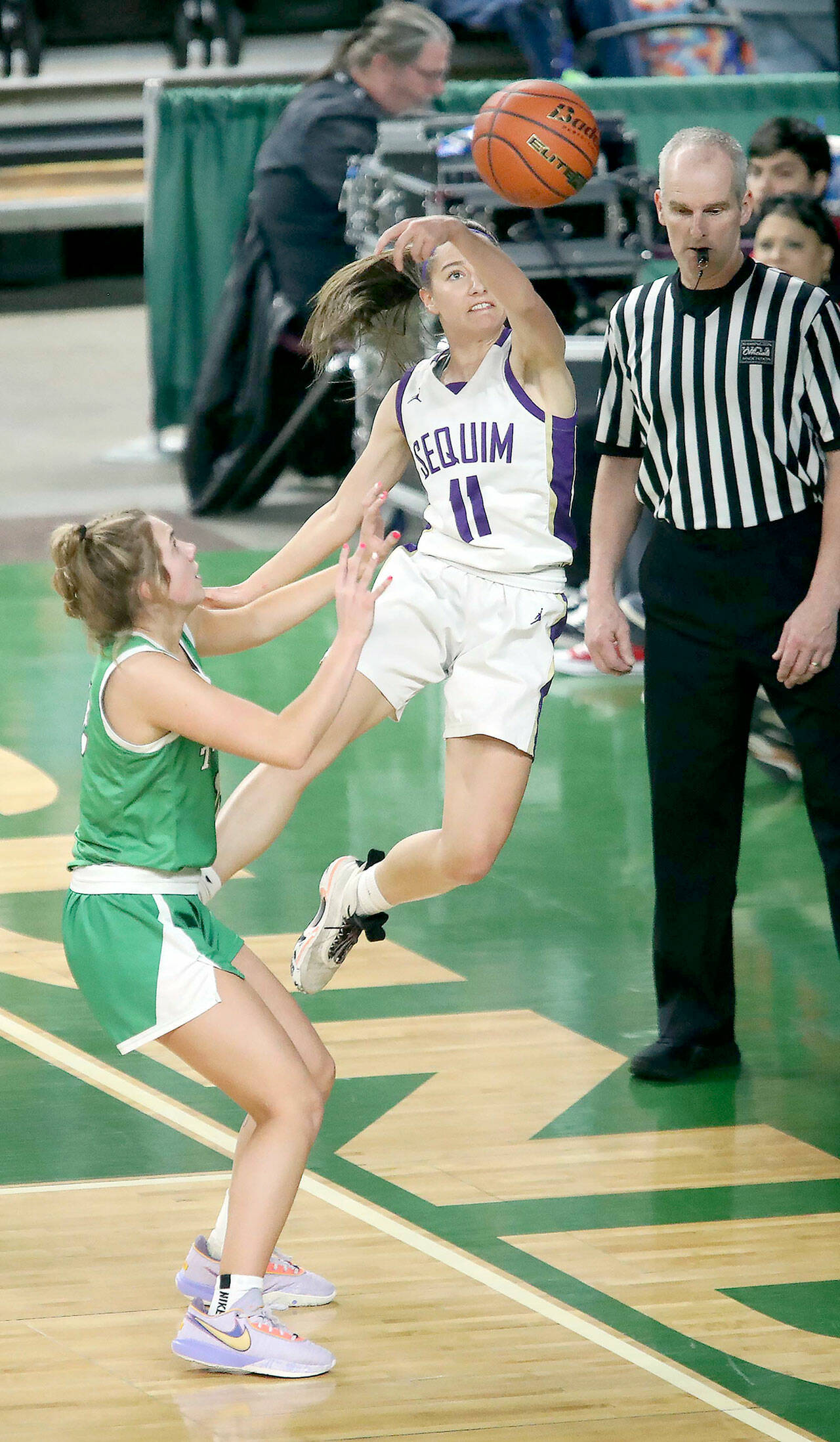 Sequim managed to grow its lead to 23-8 at halftime, getting three big free throws from Hannah Bates after she was fouled while shooting a trey, and eight of Jolene Vaara’s game-high 17 points came in the second quarter.