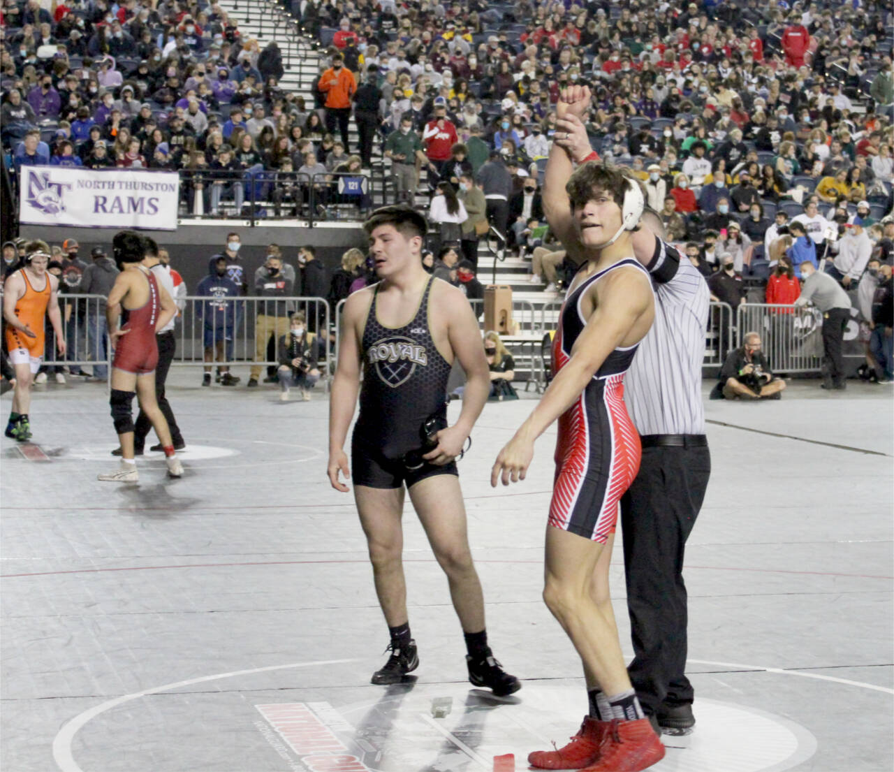 Also, East Jefferson’s Logan Massie is declared the winner on points over Kaleb Hernandez of Royal at the Mat Classic in the Tacoma Dome on Saturday. Massie went to win his semifinals match and qualify for the state championship match. He finished second in the state in the 1A 170-pound division.
