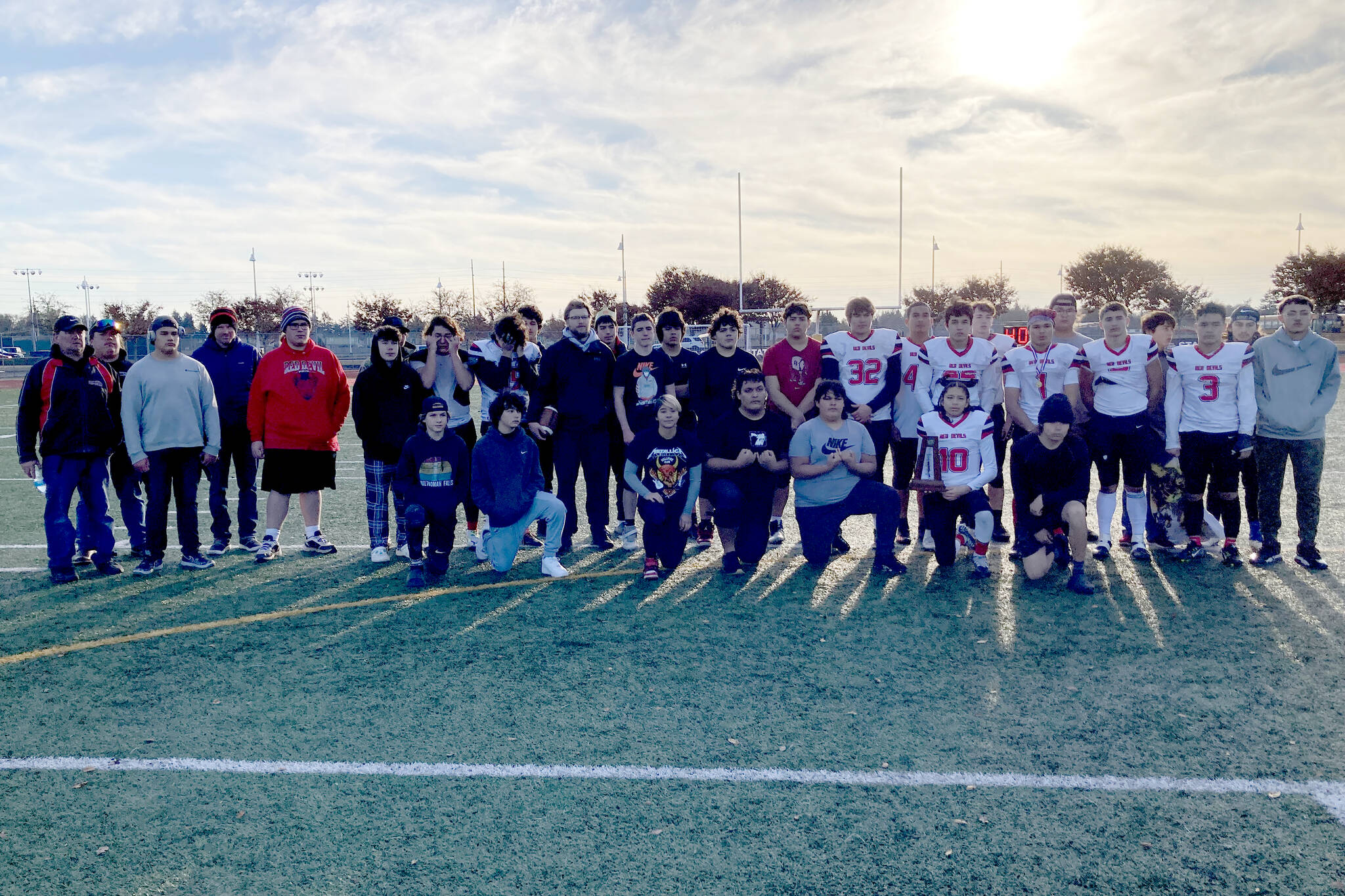 The Red Devils turned the ball over five times on the sun-splashed turf at Mount Tahoma High School on Saturday — three fumbles and two interceptions, including a 93-yard interception return by Remington Paz to make it a two-score game at 20-6 in the third quarter.