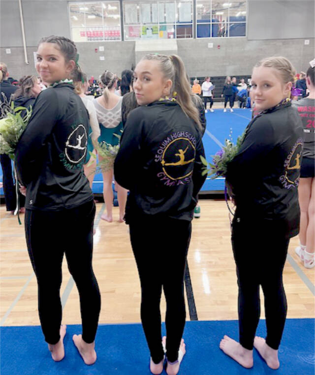 BELLEVUE — The Sequim and Port Angeles gymnastics teams got three gymnasts in the top 83 all-around at the 1A/2A/3A state championships held late last week at Sammamish High School.