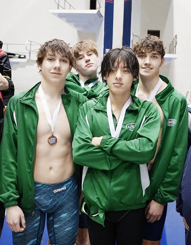 The Port Angeles 200-yard freestyle relay team of Kean McClain, Finn Thompson, Landon Close and Alex Che had the best showing of the meet, finishing seventh with a time of 1 minute, 35.48 seconds, beating Selah by 0.02 seconds and earning 24 team points.