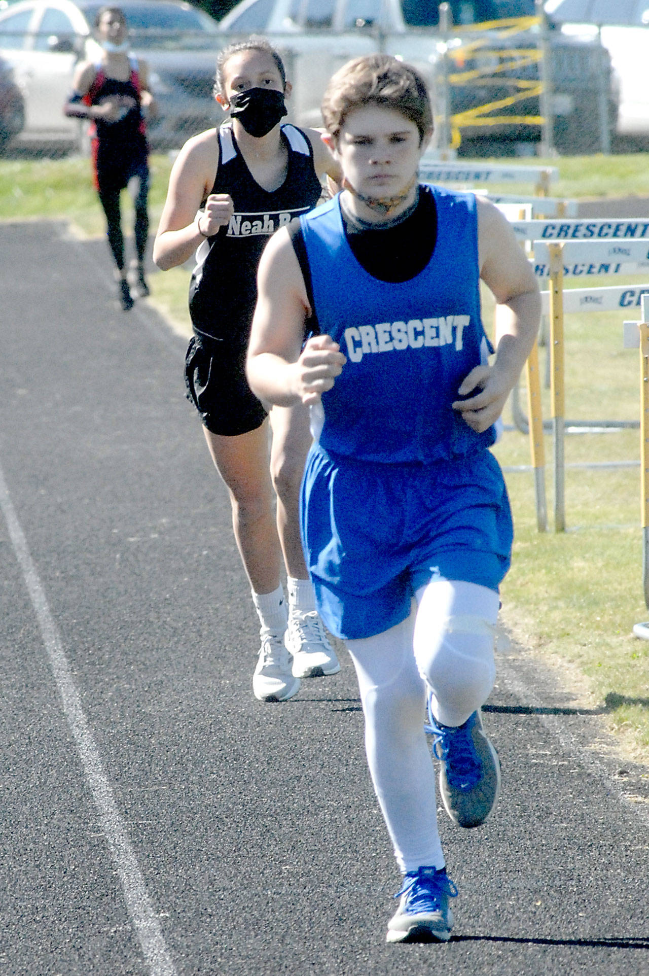 There was a three-way tie for first in the girls’ long jump Makiah Clark of Crescent and Neah Bay’s Ruth Greene and Laila Greene all jumped 13-0. Clark also won the 100-meter run in 15.69, while Laila Greene won the 800 meters (3:10.34).