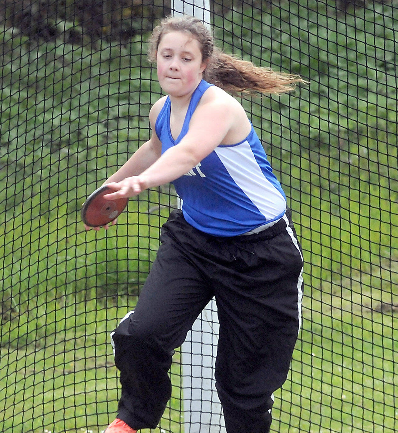 Crescent’s Naomii Sprague was the big star for the girls. She won both the 100 meters (14.53) and the 200 meters (29.80), then won a pair of field events — the long jump (13-8) and the triple jump (27-8).