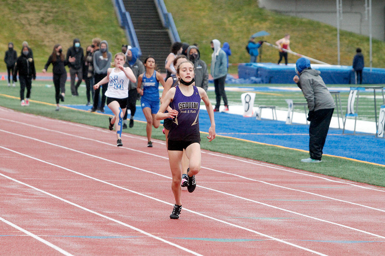 The Sequim girls ended up third at the 11-team meet with 87 points. Central Kitsap, a 3A school, won with 162.25 points. Cullen’s school, North Kitsap, took second at 105 points. Cullen also won the triple jump and was part of a first-place 4×200 team.