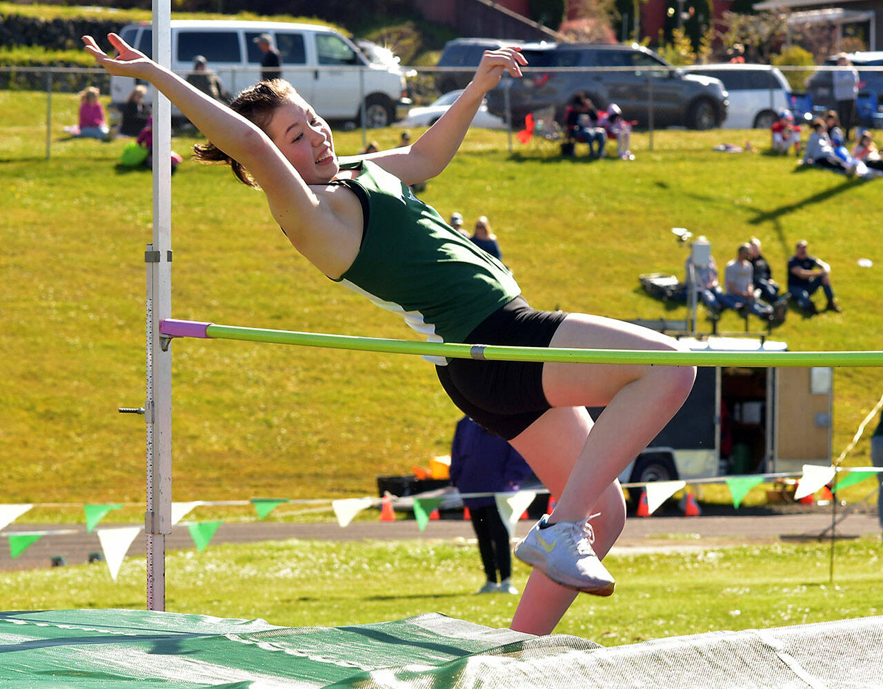 Port Angeles’ 4×100 team of Alexis Priest, Octavia Smith, Zoe Ernst and Lillian Sutherland claimed victory in 58.31 seconds and the 4×400 relay squad of Ernst, Kayla Grant, Brooke Pierce and Miriam Cobb also won (4:40.57).