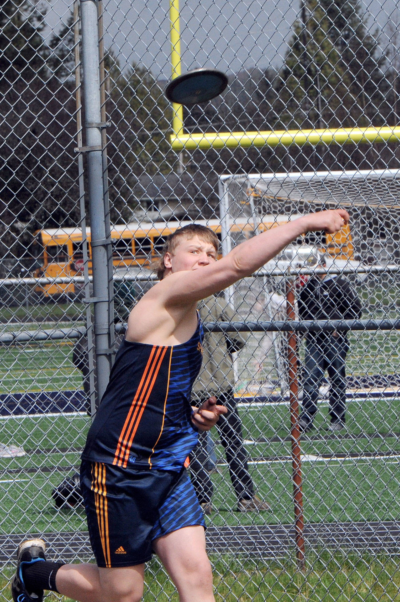 Discus — Baysinger, Forks, first, 137-5; McNeese, Crescent, second, 125-8; Rondeau, Forks, third, 124-8; Luke Dahlgren, Forks, fourth,115-4; Trevor Engeseth, Forks, fifth, 88-5; Jake Long, Forks, sixth, 82-9; Ward, Crescent, seventh, 82-7; Aaron Bennett, Forks, eighth,82-5; Hayden Wickham, PA, ninth, 77-5; Derek Gonzales, NB, 10th, 70-6; Eden Cisneros, Forks, 11th, 68-5; Shaw, PA, 12th, 63-8; Walsh,PA, 13th, 58-1; Hill, PA, 14th, 57-8; Allen, PA, 15th, 52-3; Edwards, Forks, 16th, 46-3; Martinez, NB, 17th, 34-9.