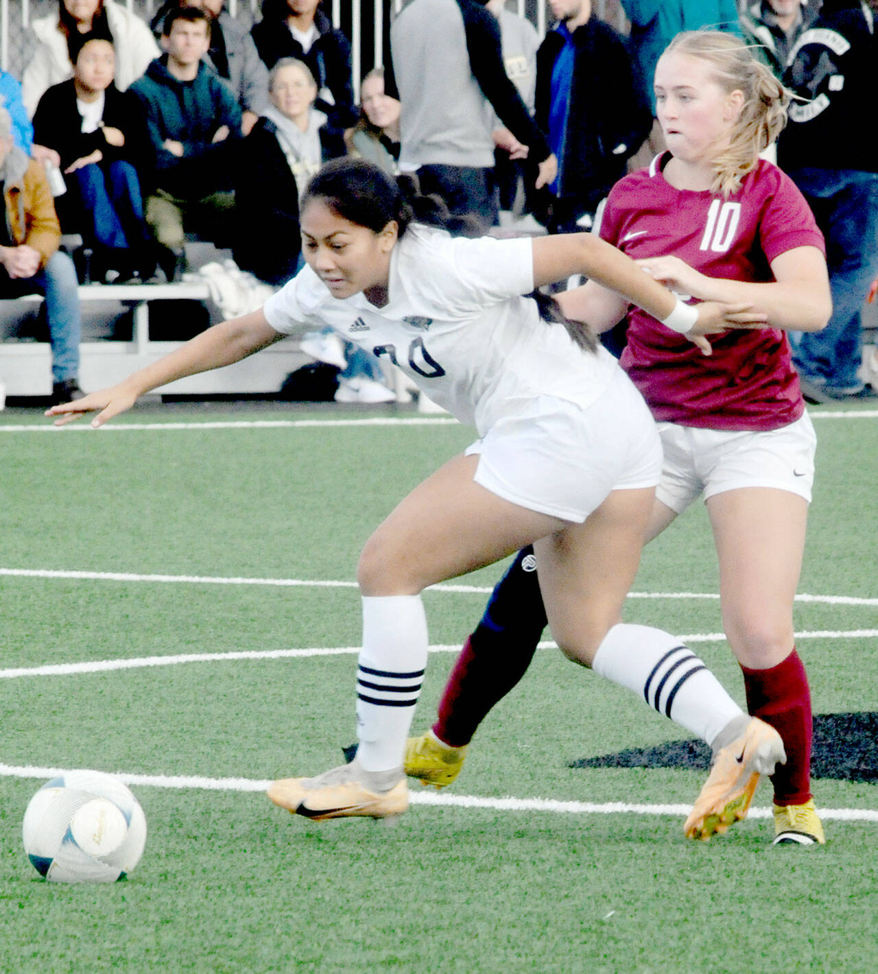 “That’s soccer. It’s an interesting game,” said coach Kanyon Anderson, on how the Pirates dominated play but simply had trouble getting a goal. Peninsula also had players injured as Shawna Larson was playing with a cast on her broken hand and one of their leading goal-scorers, Briana-Jean Tanaka, was on crutches after injuring her knee in practice.