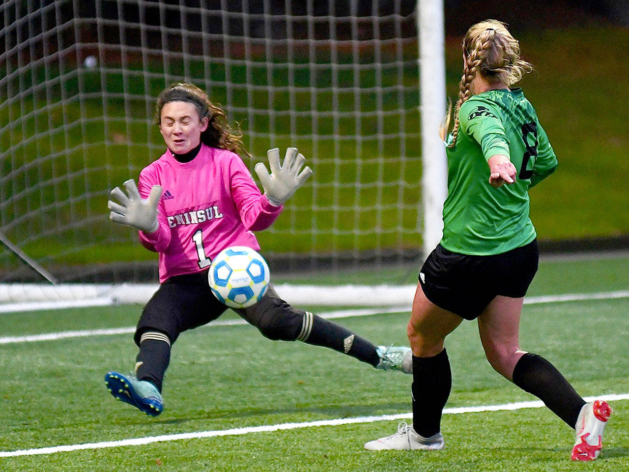 Peninsula just had to hang on for 14 minutes plus stoppage time but the Thunderbirds didn’t make it easy, with two more golden scoring opportunities. Kenagy made her two best stops of the match in those final minutes.