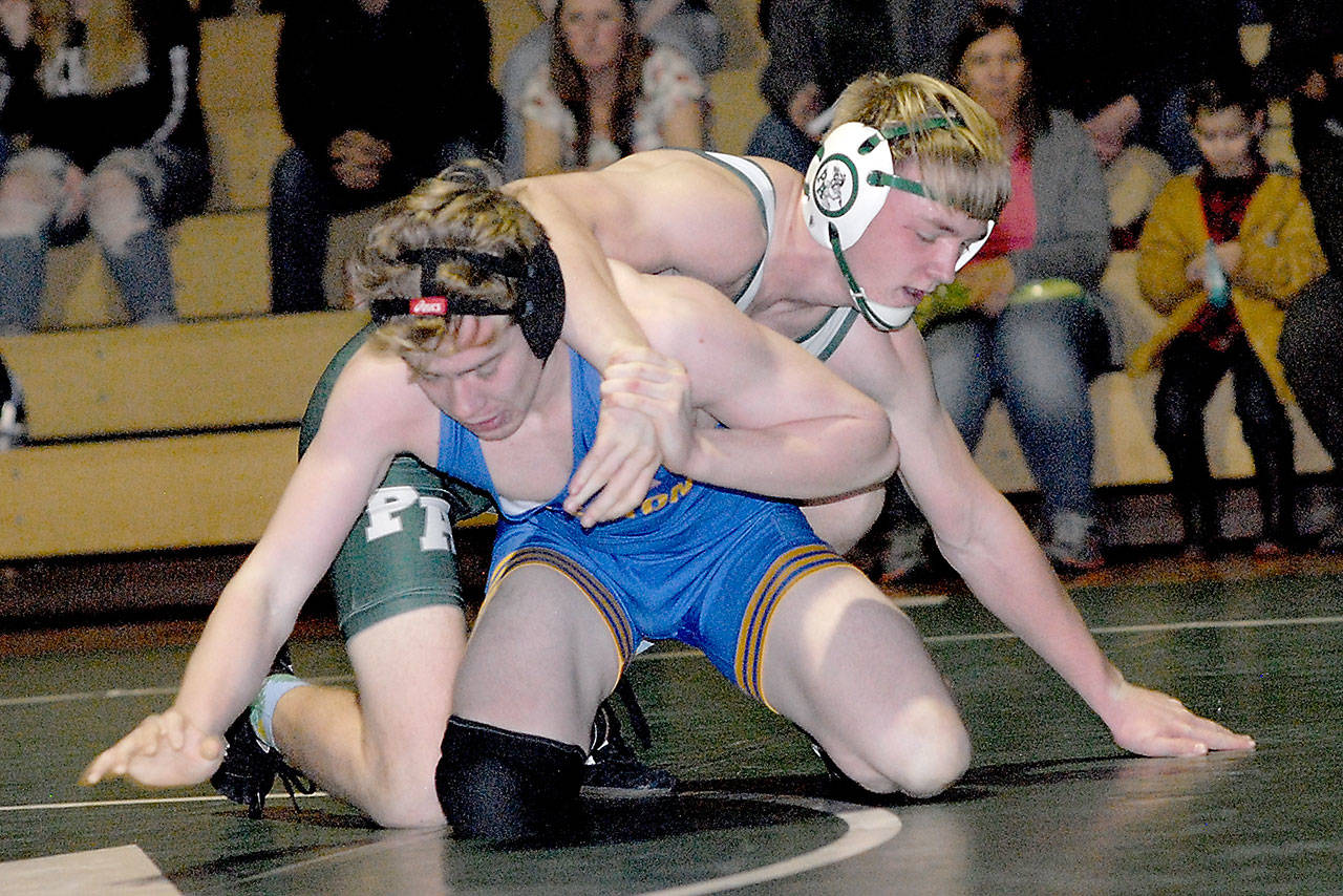 Enter Adam Borde at 138 pounds. Borde’s quick takedown got the crowd into the match and his dominant performance ended in a well-earned pin at 3:26 and six points for Port Angeles.