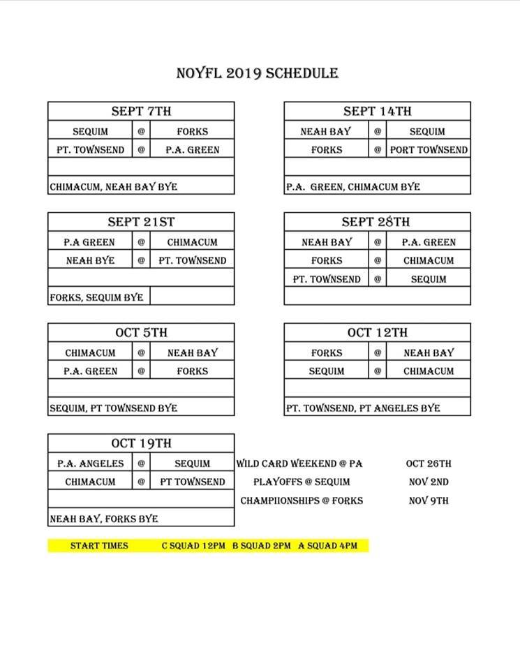 Other teams in the North Olympic Youth Football League are Sequim, Forks, Chimacum and Neah Bay.