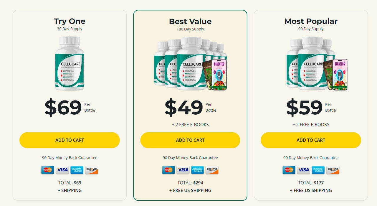 CelluCare is competitively priced to provide users with an accessible option for blood sugar support. Here’s a breakdown of the pricing options available for potential customers: